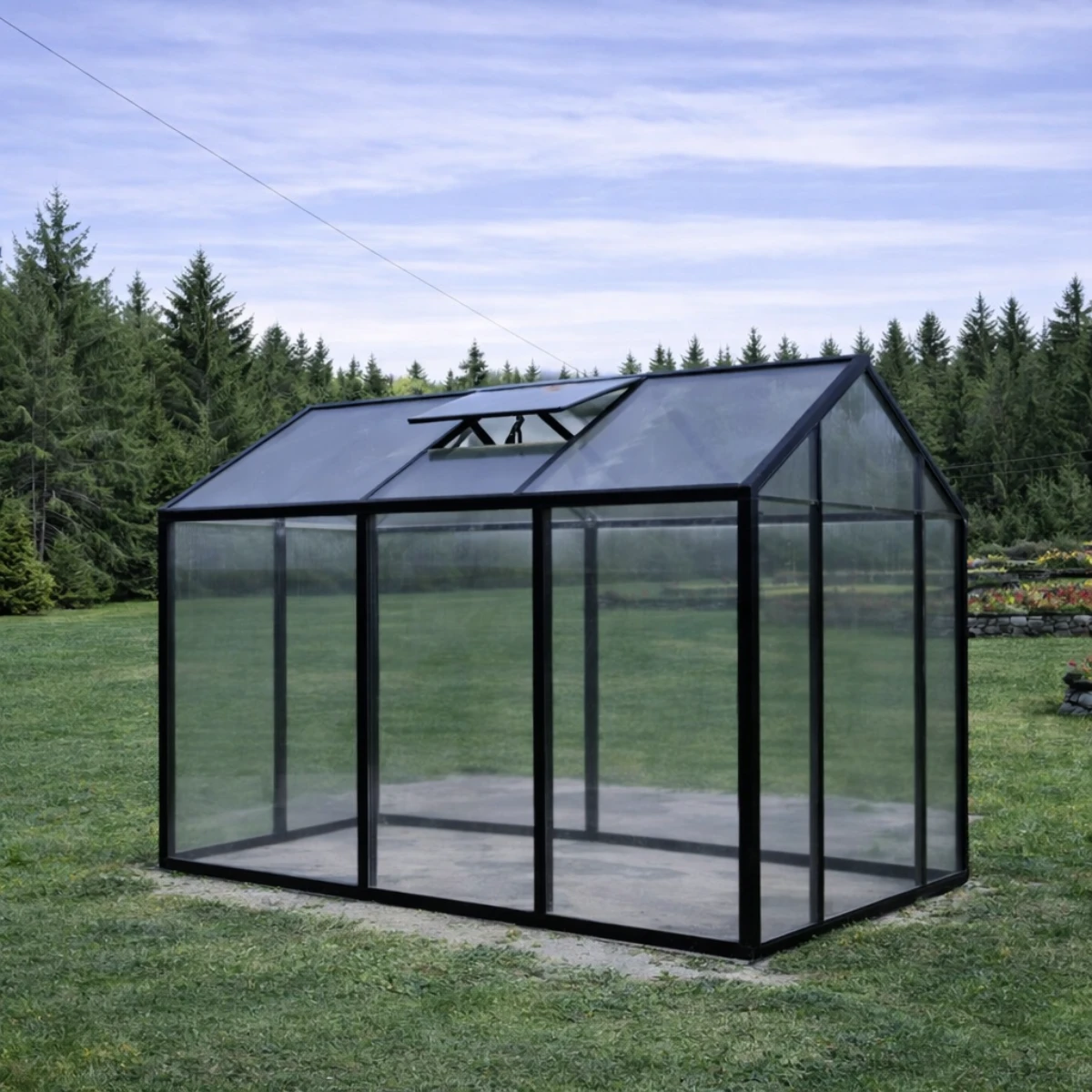 Kattematerjalina kasutatakse 8 mm paksust kirkast kihtplastikut, mis aitab hoida kasvuhoones ühtlasemat temperatuuri ja tagab taimedele hea valguse. Musta värvi katteliistud annavad kasvuhoonele modernse ja viimistletud välimuse ning aitavad kattematerjali kindlalt paigal hoida.